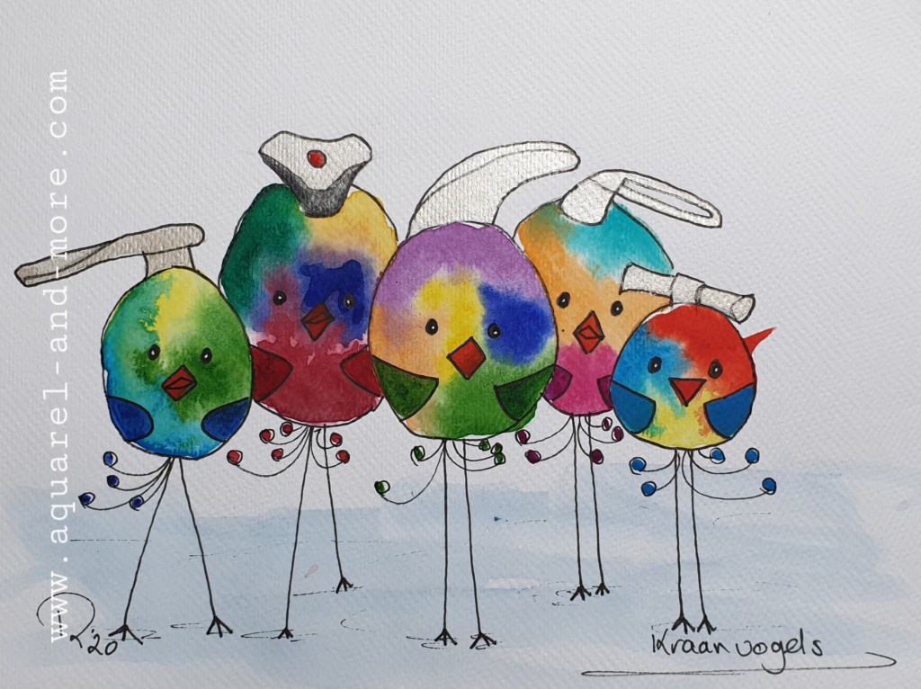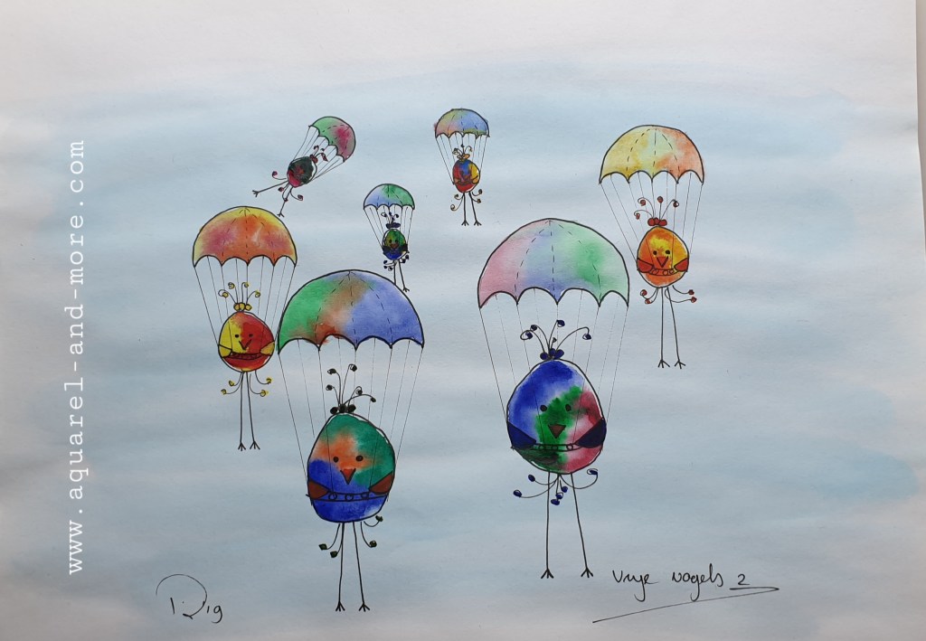 Early ibrds 2 , 20 x 30, aquarelverf. parelmoerverf en tekenpen op zwart papier € 40.–present Brexit…..24 x 18, aquarelverf en pen € 30.–Round table conversation, 19 x 14,5 aquarelverf en pen € 25.–Senta wader 19 x 14,5 aquarelverf en pen € 25.–Choir , 19 x 14,5 aquarelverf en pen 25.–flightless bird , 19 x 14,5 ecoline en pen € 25.–SOLD Bird… 14 x 9, aquarelverf en pen € 20.–Love birds, 19 x 14,5 ecoline, aquarelverf en pen € 25.–Brrr 2, 19 x 14,5 aquarelverf en pen € 25.–birds playground. € 30.–SentBrrr 1, 19 x 14,5 aquarelverf en pen € 25.–VERKOCHT19 x 14,5 ecoline, aquarelverf en pen € 25.–Rice birds, 19 x 14,5 aquarelverf en pen € 25.–Sea birds 30 x 20, acrylverf, ecoline, aquarelverf, zilverstift en pen € 40.–sent 19 x 14,5 aquarelverf en pen € 25.–Free birds 2, 36 x 27 cm aquarelverf en pen € 40.–SentFull , 19,5 x 14,5, aquarelverf en pen € 40.–Birds, 9 x 14,5, aquarelverf en pen € 15.–Special investigating officer , 24 x 18, aquarelverf en pen € 30.–It is NOT cheap……24 x 18, aquarelverf en pen € 30.–Bird of colour…..24 x 18, aquarelverf en pen € 30.–24 x 18, aquarelverf en pen € 30.–Tightrope walker….24 x 18, aquarelverf en pen € 30.–Pearldiver bird 24 x 18, aquarelverf en pen € 30.– beach walker…24 x 18, aquarelverf en pen € 30.–Shy 24 x 18, aquarelverf en pen € 30.–Wher to go to without discrimination…..24 x 18, aquarelverf en pen € 30.–Sun protection 24 x 18, aquarelverf en pen € 30.–